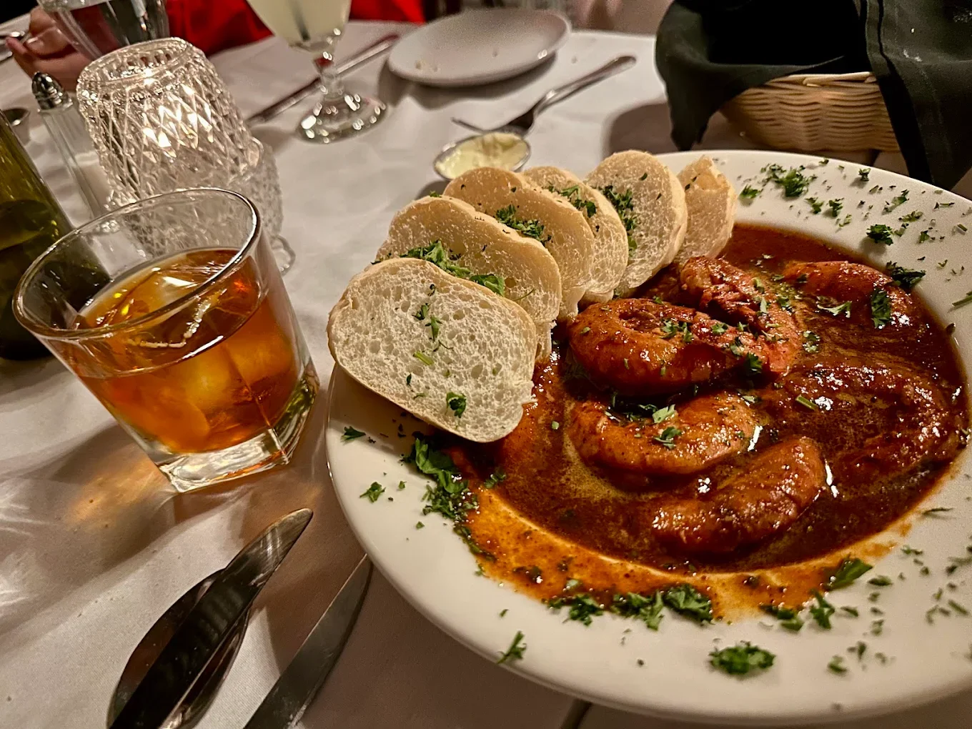 Complimentary French bread served community-style, a New Orleans tradition.